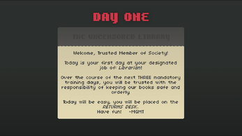 You are going through your three mandatory training days at a job designated to you by the Highers. They have chosen for you to be... A Librarian!